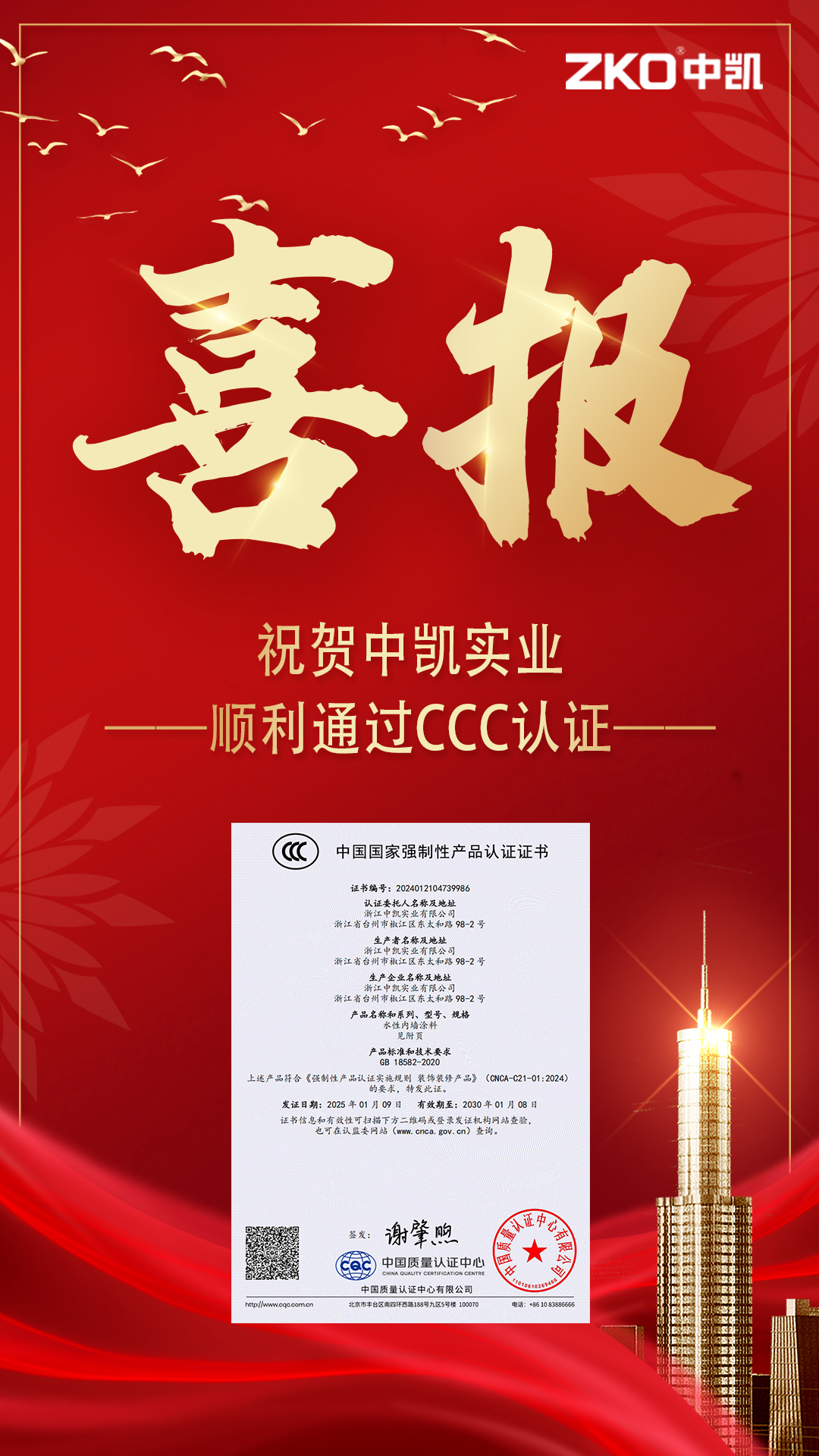 公司成立于1995年,占地面積10000㎡,建筑面積9000㎡,擁有工程師,技術(shù)員等職工120人。公司擁有精良的生產(chǎn)設(shè)備,完整的管理體系和先進(jìn)的檢測(cè)設(shè)備,經(jīng)過多年的市場(chǎng)調(diào)研和產(chǎn)品開發(fā),薈萃了許多科研精英,解決了以往涂料中存在的一些長(zhǎng)期沒有獲得解決的缺陷,成為建筑涂料領(lǐng)域的佼佼者,并成為國(guó)內(nèi)具有一定規(guī)模和信譽(yù)的涂料生產(chǎn)企業(yè)。主要產(chǎn)品“中凱”牌高、中檔內(nèi)外墻厚質(zhì)十大系列近百個(gè)品種的建筑涂料,建筑水性反射隔熱保溫涂料和建筑外墻外保溫隔熱防火材料三個(gè)體系。